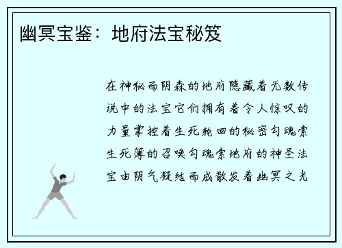 在神秘而阴森的地府,隐藏着无数传说中的法宝,它们拥有着令人惊叹的力量,掌控着生死轮回的秘密。